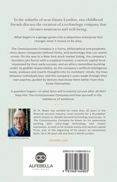 What begins in a garage grows into a ubiquitous enterprise that changes what it means to be alive. The Consciousness Company is a funny, philosophical and prophetic story about companies without limits, and technology that can rewire minds. On the way to a New York stock market listing, the company's founders join forces with a sceptical investor, a venture capital fund impressed by their early success, and an ethics committee buckling under its godlike responsibility. As the company's artificial intelligence reads, analyses and inserts thoughts into its members' minds, the lines between individuals blur, and the company's users wade through their own psyches, guided by devices that know them better than they know themselves. A question lingers-in what form will humanity survive after all this? Step into The Consciousness Company and lose yourself in the substance of existence.