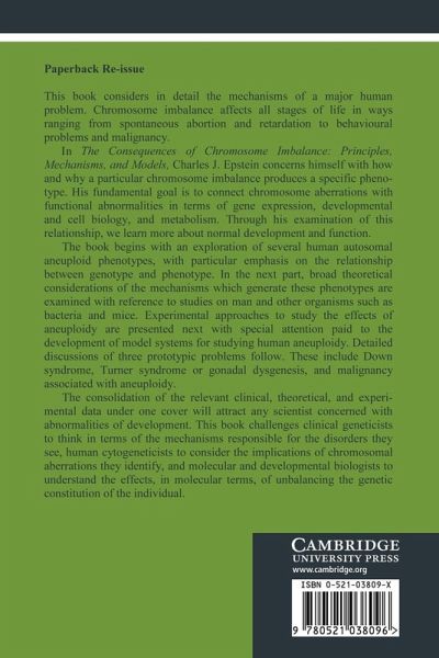 This book considers in detail the mechanisms of a major human problem. Chromosome imbalance affects all stages of life in ways ranging from spontaneous abortion and retardation to behavioural problems and malignancy. In The Consequences of Chromosome Imbalance: Principles, Mechanisms, and Models, Charles J. Epstein concerns himself with how and why a particular chromosome imbalance produces a specific phenotype. His fundamental goal is to connect chromosome aberrations with functional abnormalities in terms of gene expression, developmental and cell biology, and metabolism. Through his examination of this relationship, we learn more about normal development and function. The book begins with an exploration of several human autosomal aneuploid phenotypes, with particular emphasis on the relationship between genotype and phenotype. In the next part, broad theoretical considerations of the mechanisms which generate these phenotypes are examined with reference to studies on man and other organisms such as bacteria and mice. Experimental approaches to study the effects of aneuploidy are presented next with special attention paid to the development of model systems for studying human aneuploidy.