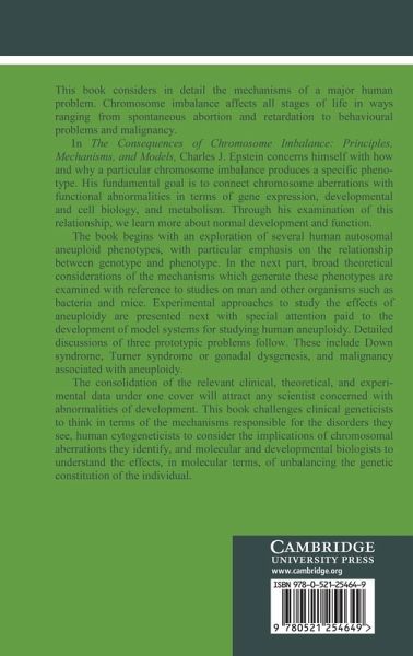 This book considers in detail the mechanisms of a major human problem. Chromosome imbalance affects all stages of life in ways ranging from spontaneous abortion and retardation to behavioural problems and malignancy. Charles J. Epstein concerns himself with how and why a particular chromosome imbalance produces a specific phenotype. His fundamental goal is to connect chromosome aberrations with functional abnormalities in terms of gene expression, developmental and cell biology, and metabolism. Through his examination of this relationship, we learn more about normal development and function. The book begins with an exploration of several human autosomal aneuploid phenotypes, with particular emphasis on the relationship between genotype and phenotype. In the next part, broad theoretical considerations of the mechanisms which generate these phenotypes are examined with reference to studies on man and other organisms such as bacteria and mice. Experimental approaches to study the effects of aneuploidy are presented next with special attention paid to the development of model systems for studying human aneuploidy.