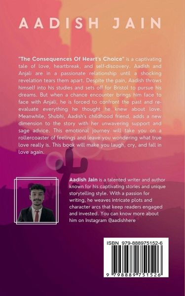 The book ""The Consequences of Heart's Choice"" is a captivating love story that takes you on an emotional journey through the ups and downs of a relationship. The protagonist, Aadish, is a young and ambitious student who falls in love with Anjali, a beautiful and caring girl. The two embark on a journey filled with laughter, love, and passion. However, as time passes, they face challenges and obstacles that test the strength of their relationship. Through it all, they stand by each other, determined to make it work. The book's plot is woven with twists and turns that keep the reader on edge. The story is full of relatable characters and relatable moments, making it an enjoyable read for anyone who has experienced the ups and downs of relationships. The writing style is fluent, with beautiful descriptions of the characters and the setting, making it easy to get lost in the story. One of the most striking aspects of the book is its emotional depth. The author has a unique way of bringing out the characters' raw emotions, making it easy for the reader to connect with them. The author captures it all with sensitivity and honesty, whether it's Aadish's heartache or Anjali's confusion. Overall, this book is a must-read for anyone who loves a good love story. It is a beautiful tale of love, loss, and growth that will leave you with a renewed appreciation for life's journey. So why not pick up a copy today and embark on this emotional journey yourself?