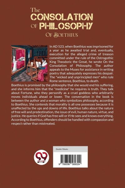 In AD 523, when Boethius was imprisoned for a year as he awaited trial and, eventually, execution for the alleged crime of treason committed under the rule of the Ostrogothic King Theodoric the Great, he wrote On the Consolation of Philosophy.The author appeals to the Muses for assistance in writing poetry that adequately expresses his despair.The "wicked and unprincipled men" who rule Rome sentence, Boethius, to death. Boethius is promised by the philosophy that she would end his suffering, and she informs him that the "medicine" he requires is truth. They talk about Fortune, who they personify as a cruel goddess who arbitrarily moves individuals ahead or lower.The conversation in the book is between the author and a woman who symbolizes philosophy, according to Boethius. She contends that morality is all one possesses because it is unaffected by the ups and downs of life.Boethius talks about the nature of free will and predestination, the issue of evil, human nature, virtue, and justice. He queries if God has free will or if He sees and knows everything. According to Boethius, offenders should be handled with compassion and respect rather than mistreated.