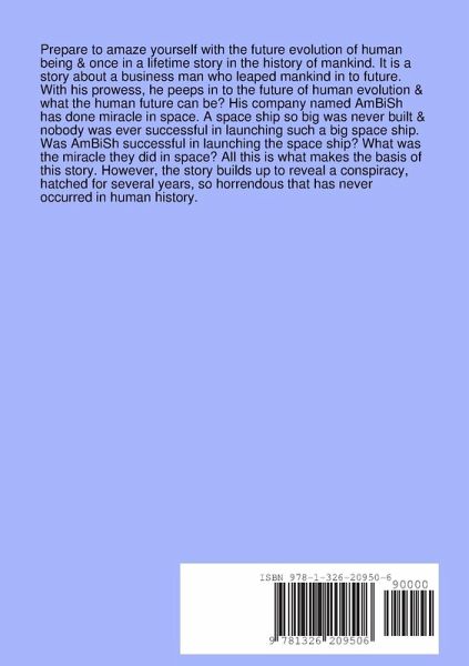 Prepare to amaze yourself with the future evolution of human being & once in a lifetime story in the history of mankind. It is a story about a business man who leaped mankind in to future. With his prowess, he peeps in to the future of human evolution & what the human future can be? His company named AmBiSh has done miracle in space. A space ship so big was never built & nobody was ever successful in launching such a big space ship. Was AmBiSh successful in launching the space ship? What was the miracle they did in space? All this is what makes the basis of this story. However, the story builds up to reveal a conspiracy, hatched for several years, so horrendous that has never occurred in human history.