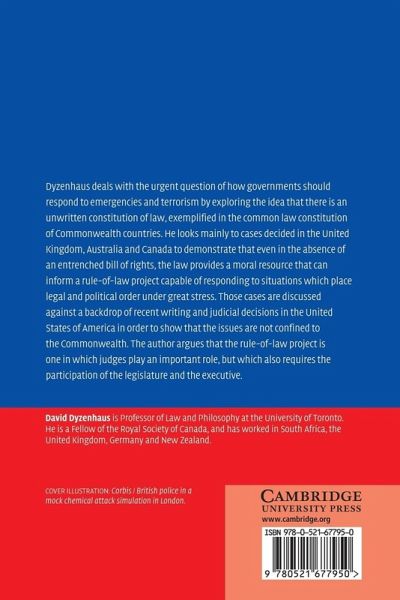 Dyzenhaus deals with the urgent question of how governments should respond to emergencies and terrorism by exploring the idea that there is an unwritten constitution of law, exemplified in the common law constitution of Commonwealth countries. He looks mainly to cases decided in the United Kingdom, Australia and Canada to demonstrate that even in the absence of an entrenched bill of rights, the law provides a moral resource that can inform a rule-of-law project capable of responding to situations which place legal and political order under great stress. Those cases are discussed against a backdrop of recent writing and judicial decisions in the United States of America in order to show that the issues are not confined to the Commonwealth. The author argues that the rule-of-law project is one in which judges play an important role, but which also requires the participation of the legislature and the executive.