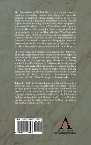 'The Constitution of Shelley's Poetry' is a close philosophical reading of 'Prometheus Unbound' from the perspective of the argument or drama of language played out in its pages.