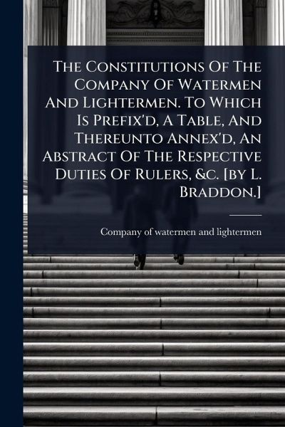 ![The Constitutions Of The Company Of Watermen And Lightermen. To Which Is Prefix'd, A Table, And Thereunto Annex'd, An Abstract Of The Respective Duties Of Rulers, &c. [by L. Braddon.] The Constitutions Of The Company Of Watermen And Lightermen. To Which Is Prefix'd, A Table, And Thereunto Annex'd, An Abstract Of The Respective Duties Of Rulers, &c. [by L. Braddon.]](https://bilder.buecher.de/produkte/74/74533/74533602n.jpg)