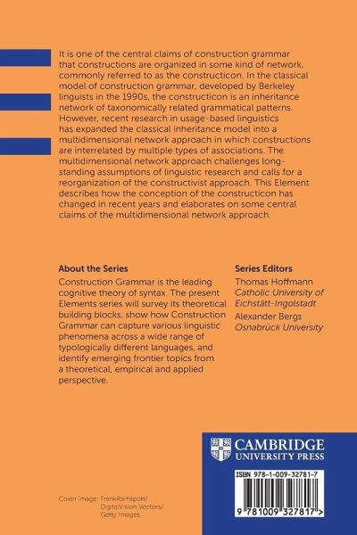 It is one of the central claims of construction grammar that constructions are organized in some kind of network, commonly referred to as the constructicon. This Element describes how the conception of the constructicon has changed in recent years and elaborates on some central claims of the multidimensional network approach.