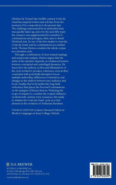 Chrétien de Troyes's late twelfth-century 'Conte du Graal' has inspired writers and scholars from the moment of its composition to the present day. The challenge represented by its unfinished state was quickly taken up, and over the next fifty years the romance was supplemented by a number of continuations and prologues, which eventually came to dwarf Chrétien's text. In one of the first studies to treat the 'Conte du Graal' and its continuations as a unified work, Thomas Hinton considers the whole corpus as a narrative cycle. Through a combination of close textual readings and manuscript analysis, the author argues that the unity of the narrative depends on a balanced tension between centripetal and centrifugal dynamics. He traces how the authors, scribes and illuminators of the cycle worked to produce coherence, even as they contended with potentially disruptive forces: multiple authorship, differences of intention, and changes in the relation between text, audience and book. Finally, he tackles the long-held orthodoxy that places the 'Perceval' Continuations on the margins of literary history. Widening the scope of enquiry to consider the corpus's influence on thirteenth-century verse romances, this study re-situates the 'Conte du Graal' cycle as a vital element in the evolution of Arthurian literature. Thomas Hinton is Junior Research Fellow in Modern Languages at Jesus College, Oxford.