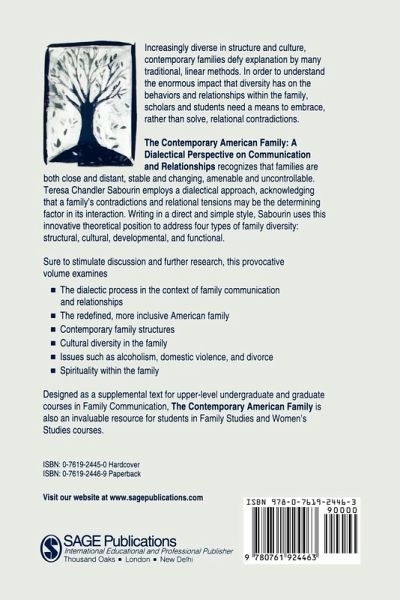 Written to expand the definition of the contemporary American family to be more inclusive, this book approaches diversity as the norm and does not assume conventional family values. The theoretical position is the dialectical approach, which assumes paradox and relational tension as normal, rather than a systems approach, which is a form of psychological cause and effect. Chapter One defines `dialectics' in the context of family communication and family relations. Chapter Two addresses the question, `What is a real family?' Chapters Three to Six examine four types of family diversity: structural, cultural, developmental, and functional. Chapter Seven takes a bold step by examining the meaning and effects of family spirituality, a topic rarely considered in academic circles but one that has enormous impact on the communication behaviors and relationships within the family.