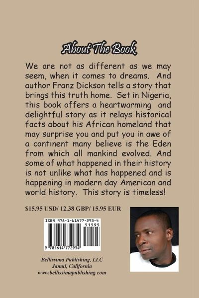 Franz Dickson, also known as Franz Dickson Aki, is a seasoned singer, songwriter, voiceover artiste and writer in the Lagos circuit of the Nigerian music and entertainment industry. Franz garnered wide experience as back up vocalist for notable Nigerian artistes, and his voice soon adorned TV and radio commercials for top brands, both as a singer and voice over artiste since the early 2000s. A graduate of Mass Communication, with a flair for the spoken English, Franz resides in Lagos Nigeria, from where he sings and writes on a wide spectrum of subjects. "The Contestant" is Franz’ first full length fiction novel. He has also written many short stories. Bellissima Publishing, LLC welcomes Franz Dickson into its family of international writers. Learn some of the history of Africa through the pages of this book, and see how all of us are more alike than we are different. And let this book remind you, we all need to follow our dreams if we expect our dreams to come true; and remember that no dream is too big for us to dream. And Yes! We can make our dreams come true!
