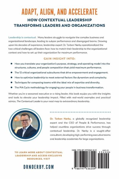Adapt, Align, and Accelerate: How Contextual Leadership Transforms Leaders and Organizations Leadership is contextual. Many leaders miss out on their teams' full potential because navigating the complex and ever-changing business landscape is more and more challenging. Traditional leadership models often fail to address the intricate interplay of organizational intentions, external factors, and internal dynamics resulting in subpar performance and disengaged teams. As a result, executives find themselves ill equipped to set their organization and leaders up for success in an increasingly complex world. Drawing upon his decades of experience in corporate leadership training, organizational development, and leadership research, renowned leadership expert Dr. Torben Nørby succeeded in operationalizing the two critical challenges all leaders face: how to match their leadership to organizational context and how to set up their organization for maximum performance. To be truly effective, leaders must deeply understand the factors influencing their organizations and adapt their leadership accordingly to create the conditions for success. The Contextual Leader offers a groundbreaking framework for understanding and shaping leadership context and provides leaders with a comprehensive tool kit for aligning organizational structures, cultures, and people factors with strategic objectives and the operating model. In The Contextual Leader, you'll discover: How you translate your organization's purpose, strategy, and operating model into the structures, cultures, and people composition that yield maximum performance. How to identify and leverage 12 critical organizational subcultures to drive empowerment and engagement. Strategies for optimizing leadership approaches and the organizational setup to meet external factors like dynamism, complexity, and risk intensity. Techniques for composing teams with the ideal mix of expertise and diversity. The PIA Cycle methodology for engaging your people in business transformation, continuous learning, and culture change. Whether you're a seasoned executive looking to refine your leadership perspectives or a rising leader seeking effective management techniques, The Contextual Leader challenges outdated leadership paradigms and equips you with the knowledge to shape your leadership context and drive sustainable success. Filled with real-world examples, practical advice, and insight from respected thought leaders, The Contextual Leader will maximize your impact as a leader and drive significant organizational development.