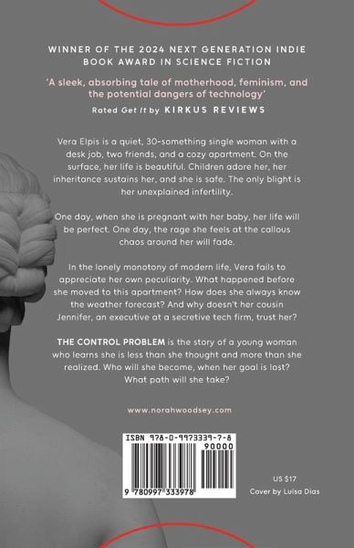 Vera Elpis is a quiet woman with a desk job, two friends, and a cozy apartment. On the surface, her life is easy. Children adore her, her inheritance sustains her, and she is safe. The only blight is her unexplained infertility, a condition that shames and enrages her. In her lonely quest for motherhood, Vera fails to appreciate her own peculiarity. What happened before she moved here? How does she always know the weather forecast? And why doesn't her cousin Jennifer, an executive at a secretive tech firm, trust her? THE CONTROL PROBLEM tells of a woman who learns she is less than she thought and more than she realized. Who will she become when her goal is lost? What path will she take?