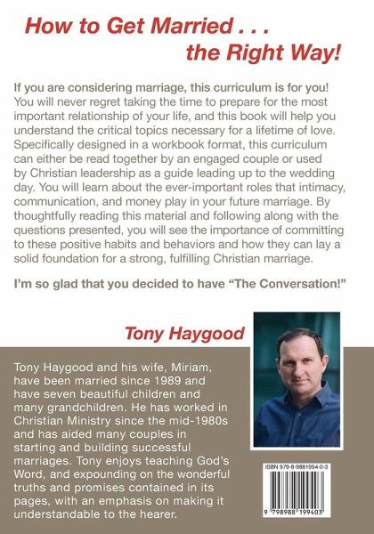 If you are considering marriage, this curriculum is for you! You will never regret preparing for the most important relationship of your life, and this book will help you understand the critical topics necessary for a lifetime of love. Specifically designed in a workbook format, this curriculum can be read together by an engaged couple or used by Christian leadership as a guide leading up to the wedding day. You will learn about the important roles intimacy, communication, and money play in your future marriage. By thoughtfully reading this material and following along with the questions presented, you will see the importance of committing to these positive habits and behaviors and how they can lay a solid foundation for a strong, fulfilling Christian marriage.