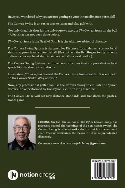 Have you wondered why you are not getting to your innate distance potential? The Convex Swing is an easier way to learn and play golf with. Not only that. It is thus far the only route to execute The Convex Strike on the ball - A feat that has not been done before. The Convex Strike is the Grail of Golf. It is the ultimate arbiter of distance. The Convex Swing System is designed for Distance. It can deliver a convex bend shaft to approach and strike the ball. (By contrast, the Ben Hogan Swing can only deliver a concave bend shaft to strike the ball - a weak strike.) The Convex Swing System has three core principles that are prevalent in field sports like the shot put and discus. An amateur, YT Siew, has learned the Convex Swing from scratch. He was able to do the Convex Strike. Why not you? Now, any professional golfer can use the Convex Swing to emulate the "pure" Convex Strike performed by Iron Byron, a club-testing machine. The Convex Strike will set new distance standards and transform the professional game!