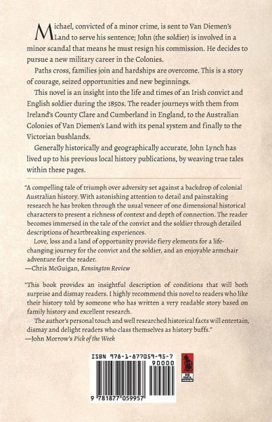 This novel is an insight into the life and times of an Irish convict and English soldier during the 1850s. The reader journeys with them from Ireland's County Clare and Cumberland in England, to the Australian Colonies of Van Diemen's Land with its penal system and finally to the Victorian bushlands. Generally historically and geographically accurate, John Lynch has lived up to his previous local history publications, by weaving true tales within these pages.