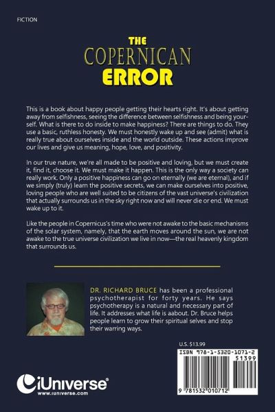 This is a book about happy people getting their hearts right. It's about getting away from selfishness, seeing the difference between selfishness and being yourself. What is there to do inside to make happiness? There are things to do. They use a basic, ruthless honesty. We must honestly wake up and see (admit) what is really true about ourselves inside and the world outside. These actions improve our lives and give us meaning, hope, love, and positivity. In our true nature, we're all made to be positive and loving, but we must create it, find it, choose it. We must make it happen. This is the only way a society can really work. Only a positive happiness can go on eternally (we are eternal), and if we simply (truly) learn the positive secrets, we can make ourselves into positive, loving people who are well suited to be citizens of the vast universe's civilization that actually surrounds us in the sky right now and will never die or end. We must wake up to it. Like the people in Copernicus's time who were not awake to the basic mechanisms of the solar system, namely, that the earth moves around the sun, we are not awake to the true universe civilization we live in now-the real heavenly kingdom that surrounds us.