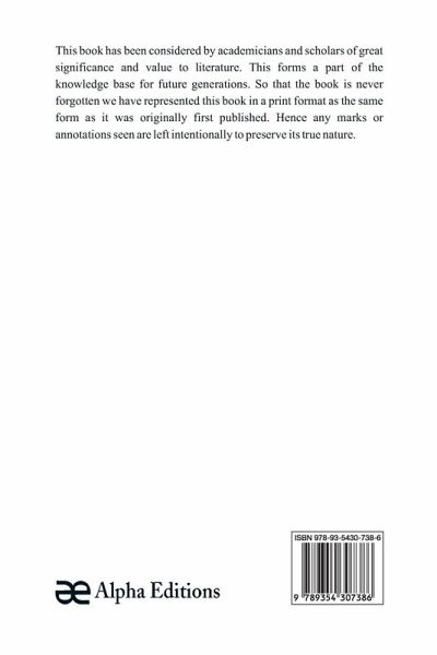 This book has been considered by academicians and scholars of great significance and value to literature. This forms a part of the knowledge base for future generations. So that the book is never forgotten we have represented this book in a print format as the same form as it was originally first published. Hence any marks or annotations seen are left intentionally to preserve its true nature.