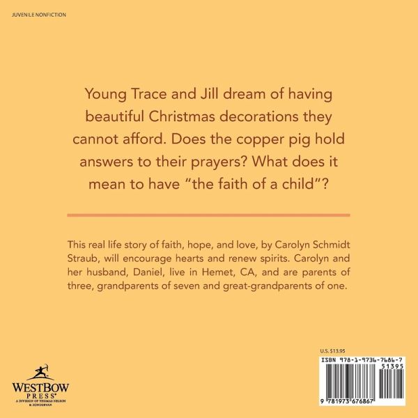 Young Trace and Jill dream of having beautiful Christmas decorations they cannot afford. Does the copper pig hold answers to their prayers? What does it mean to have "the faith of a child"?