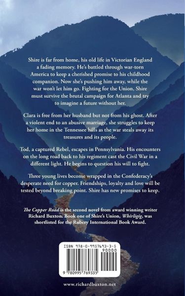 Shire is far from home, his old life in Victorian England a fading memory. He's battled through war-torn America to keep a cherished promise to his childhood companion. Now she's pushing him away, while the war won't let him go. Fighting for the Union, Shire must survive the brutal campaign for Atlanta and try to imagine a future without her. Clara is free from her husband but not from his ghost. After a violent end to an abusive marriage, she struggles to keep her home in the Tennessee hills as the war steals away its treasures and its people. Tod, a captured Rebel, escapes in Pennsylvania. His encounters on the long road back to his regiment cast the Civil War in a different light. He begins to question his will to fight. Three young lives become wrapped in the Confederacy's desperate need for copper. Friendships, loyalty and love will be tested beyond breaking point. Shire has new promises to keep. The Copper Road is the second novel from award winning writer Richard Buxton. Book one of Shire's Union, Whirligig, was shortlisted for the Rubery International Book Award.