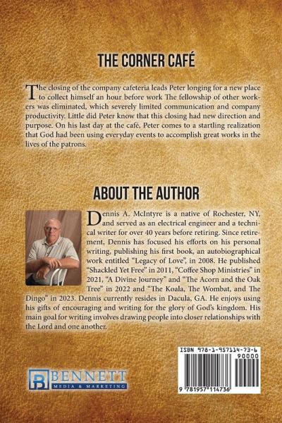 The Corner Café represents years of joy, hope, encouragement, laughter, friendships, and fellowship. Peter's daily routine visits lead to a tremendous revelation on his last day. What began, as a new location for morning coffee nearly twenty years earlier, became a habit that was orchestrated by spiritual guidance.