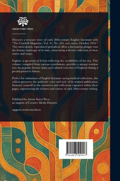 Discover a treasure trove of early 20th-century English literature with "The Cornhill Magazine, Vol. 41, No. 244, new series, October 1916." This meticulously reproduced periodical offers a fascinating glimpse into the literary landscape of its time, showcasing a diverse collection of short stories and essays. Explore a spectrum of fiction reflecting the sensibilities of the era. This volume, compiled from various contributors, provides a unique window into the popular literary tastes and cultural concerns of England during a pivotal period in history. Perfect for enthusiasts of English literature and periodical collections, this edition preserves the authentic voice and style of its original publication. Immerse yourself in the narratives and reflections captured within these pages, experiencing the richness and variety of early 20th-century writing. This work has been selected by scholars as being culturally important, and is part of the knowledge base of civilization as we know it. This work is in the public domain in the United States of America, and possibly other nations. Within the United States, you may freely copy and distribute this work, as no entity (individual or corporate) has a copyright on the body of the work. Scholars believe, and we concur, that this work is important enough to be preserved, reproduced, and made generally available to the public. We appreciate your support of the preservation process, and thank you for being an important part of keeping this knowledge alive and relevant.