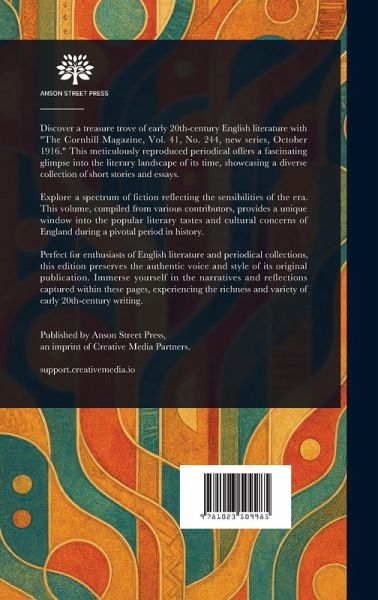Discover a treasure trove of early 20th-century English literature with "The Cornhill Magazine, Vol. 41, No. 244, new series, October 1916." This meticulously reproduced periodical offers a fascinating glimpse into the literary landscape of its time, showcasing a diverse collection of short stories and essays. Explore a spectrum of fiction reflecting the sensibilities of the era. This volume, compiled from various contributors, provides a unique window into the popular literary tastes and cultural concerns of England during a pivotal period in history. Perfect for enthusiasts of English literature and periodical collections, this edition preserves the authentic voice and style of its original publication. Immerse yourself in the narratives and reflections captured within these pages, experiencing the richness and variety of early 20th-century writing. This work has been selected by scholars as being culturally important, and is part of the knowledge base of civilization as we know it. This work is in the public domain in the United States of America, and possibly other nations. Within the United States, you may freely copy and distribute this work, as no entity (individual or corporate) has a copyright on the body of the work. Scholars believe, and we concur, that this work is important enough to be preserved, reproduced, and made generally available to the public. We appreciate your support of the preservation process, and thank you for being an important part of keeping this knowledge alive and relevant.