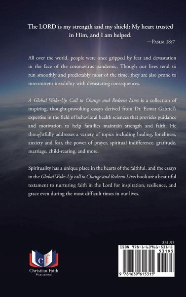 The Lord is my strength and my shield; My heart trusted in Him, and I am helped. --Psalm 28:7 All over the world, people were once gripped by fear and devastation in the face of the coronavirus pandemic. Though our lives tend to run smoothly and predictably most of the time, they are also prone to intermittent instability with devastating consequences. A Global Wake-Up Call to Change and Redeem Lives is a collection of inspiring, thought-provoking essays derived from Dr. Esmat Gabriel's expertise in the field of behavioral health sciences that provides guidance and motivation to help families…mehr