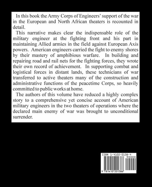 In this book the Army Corps of Engineers' support of the war in the European and North African theaters is recounted in detail. This narrative makes clear the indispensable role of the military engineer at the fighting front and his part in maintaining Allied armies in the field against European Axis powers. American engineers carried the fight to enemy shores by their mastery of amphibious warfare. In building and repairing road and rail nets for the fighting forces, they wrote their own record of achievement. In supporting combat and logistical forces in distant lands, these technicians of war transferred to active theaters many of the construction and administrative functions of the peacetime Corps, so heavily committed to public works at home. The authors of this volume have reduced a highly complex story to a comprehensive yet concise account of American military engineers in the two theaters of operations where the declared main enemy of war was brought to unconditional surrender.