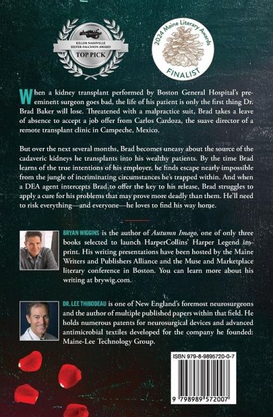 When a kidney transplant performed by Boston General Hospital's preeminent surgeon goes bad, the life of his patient is only the first thing Dr. Brad Baker will lose. Threatened with a malpractice suit, Brad takes a leave of absence to accept a job offer from Carlos Cardoza, the suave director of a remote transplant clinic in Campeche, Mexico. But over the next several months, Brad becomes uneasy about the source of the cadaveric kidneys he transplants into his wealthy patients. By the time Brad learns of the true intentions of his employer, he finds escape nearly impossible from the jungle of incriminating circumstances he's trapped within. And when a DEA agent intercepts Brad to offer the key to his release, Brad struggles to apply a cure for his problems that may prove more deadly than them. He'll need to risk everything-and everyone-he loves to find his way home.