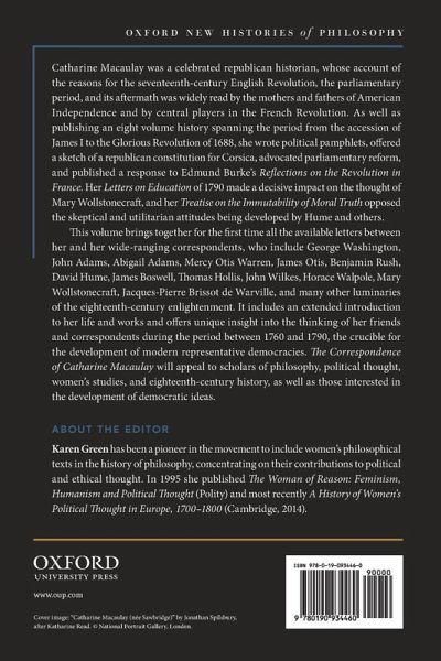 This volume brings together all the available letters between historian Catharine Macaulay and a number of eighteenth-century luminaries, including George Washington, David Hume, and Mary Wollstonecraft. It includes an extended introduction by the editor which offers unique insights into Macaulay's life and the thinking of her friends and correspondents.