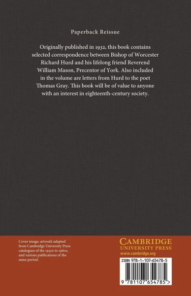 Originally published in 1932, this book contains selected correspondence between Bishop of Worcester Richard Hurd and his lifelong friend Reverend William Mason, Precentor of York. Also included in the volume are letters from Hurd to the poet Thomas Gray. This book will be of value to anyone with an interest in eighteenth-century society.