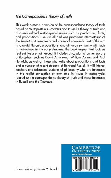 This work presents a version of the correspondence theory of truth based on Wittgenstein's Tractatus and Russell's theory of truth and discusses related metaphysical issues such as predication, facts and propositions. Like Russell and one prominent interpretation of the Tractatus it assumes a realist view of universals. Part of the aim is to avoid Platonic propositions, and although sympathy with facts is maintained in the early chapters, the book argues that facts as real entities are not needed. It includes discussion of contemporary philosophers such as David Armstrong, William Alston and Paul Horwich, as well as those who write about propositions and facts, and a number of students of Bertrand Russell. It will interest teachers and advanced students of philosophy who are interested in the realistic conception of truth and in issues in metaphysics related to the correspondence theory of truth, and those interested in Russell and the Tractatus.