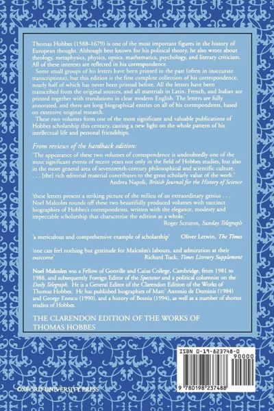 Thomas Hobbes (1588-1679) is one of the most important figures in the history of European thought. Although interest in his life and work has grown enormously in recent years, this is the first complete edition of his correspondence. The texts of the letters are richly supplemented with explanatory notes and full biographical and bibliographical information. This landmark publication sheds new light on the intellectual life of a major thinker.