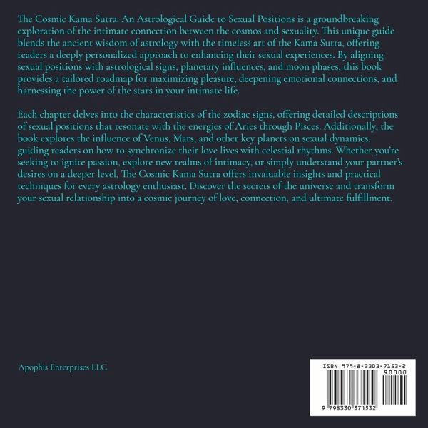 The Cosmic Kama Sutra: An Astrological Guide to Sexual Positions is a groundbreaking exploration of the intimate connection between the cosmos and sexuality. This unique guide blends the ancient wisdom of astrology with the timeless art of the Kama Sutra, offering readers a deeply personalized approach to enhancing their sexual experiences. By aligning sexual positions with astrological signs, planetary influences, and moon phases, this book provides a tailored roadmap for maximizing pleasure, deepening emotional connections, and harnessing the power of the stars in your intimate life. Each chapter delves into the characteristics of the zodiac signs, offering detailed descriptions of sexual positions that resonate with the energies of Aries through Pisces. Additionally, the book explores the influence of Venus, Mars, and other key planets on sexual dynamics, guiding readers on how to synchronize their love lives with celestial rhythms. Whether you're seeking to ignite passion, explore new realms of intimacy, or simply understand your partner's desires on a deeper level, The Cosmic Kama Sutra offers invaluable insights and practical techniques for every astrology enthusiast. Discover the secrets of the universe and transform your sexual relationship into a cosmic journey of love, connection, and ultimate fulfillment.