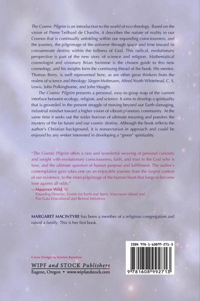 The Cosmic Pilgrim is an introduction to the world of eco-theology. Based on the vision of Pierre Teilhard de Chardin, it describes the nature of reality in our Cosmos that is continually unfolding within our expanding consciousness, and the journey, the pilgrimage, of the universe through space and time toward its consummate destiny within the fullness of God. This radical, evolutionary perspective is part of the new story of science and religion. Mathematical cosmologist and visionary Brian Swimme is the chosen guide to this new cosmology, and his insights form the continuing thread of the book. His mentor, Thomas Berry, is well represented here, as are other great thinkers from the realms of science and theology: Jurgen Moltmann, Alfred North Whitehead, C. S. Lewis, John Polkinghorne, and John Haught. The Cosmic Pilgrim presents a personal, easy-to-grasp map of the current interface between ecology, religion, and science. It aims to develop a spirituality that is grounded in the present struggle of moving beyond our Earth-damaging, industrial mindset toward a higher vision of vibrant planetary community. At the same time it seeks out the wider horizon of ultimate meaning and ponders the mystery of the far future and our cosmic destiny. Although the book reflects the author's Christian background, it is nonsectarian in approach and could be enjoyed by any seeker interested in developing a ""green"" spirituality.