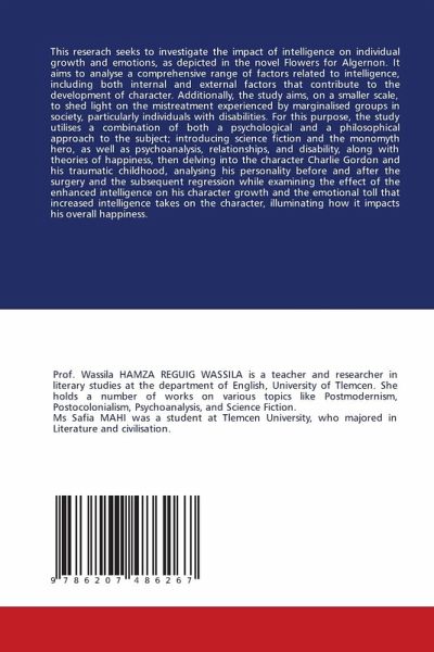 This reserach seeks to investigate the impact of intelligence on individual growth and emotions, as depicted in the novel Flowers for Algernon. It aims to analyse a comprehensive range of factors related to intelligence, including both internal and external factors that contribute to the development of character. Additionally, the study aims, on a smaller scale, to shed light on the mistreatment experienced by marginalised groups in society, particularly individuals with disabilities. For this purpose, the study utilises a combination of both a psychological and a philosophical approach to the subject; introducing science fiction and the monomyth hero, as well as psychoanalysis, relationships, and disability, along with theories of happiness, then delving into the character Charlie Gordon and his traumatic childhood, analysing his personality before and after the surgery and the subsequent regression while examining the effect of the enhanced intelligence on his character growth and the emotional toll that increased intelligence takes on the character, illuminating how it impacts his overall happiness.
