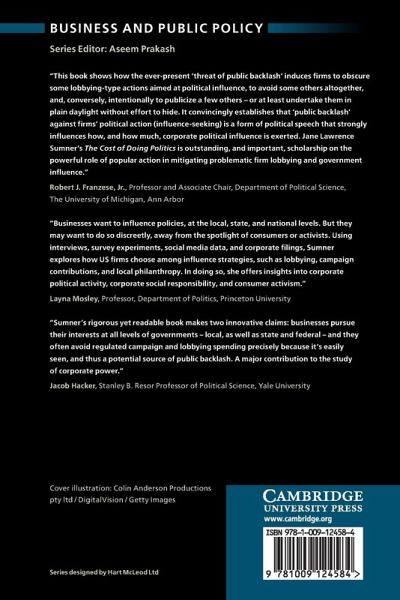 Using quantitative and qualitative evidence, Sumner shows that consumer boycotts can work to dissuade companies from donating money to politicians, but may also encourage them to attempt influence by less-visible means. This book is written for scholars and students interested in corporate political influence.