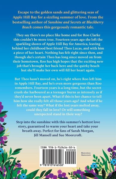 Escape to the golden sands and glittering seas of Apple Hill Bay for a sizzling summer of love. From the bestselling author of Sunshine and Secrets at Blackberry Beach comes this gorgeously romantic tale. They say there's no place like home and for Roo Clarke this couldn't be more true. Fourteen years ago she left the sparkling shores of Apple Hill Bay for America, leaving behind her childhood best friend Theo Lucas, and with him a piece of her heart. Nothing has felt right since then, and though she's certain Theo has long since moved on from their hometown, Roo has high hopes that the exciting new job that's brought her back here and the quirky beach hut she'll make her own will fill her heart again. But Theo hasn't moved on, he's right where Roo left him in Apple Hill Bay, and he's even more gorgeous than Roo remembers. Fourteen years is a long time, but the secret crush she harboured as a teenager burns as intensely as if they'd never been apart. What if this is her chance to tell him how she really felt all those years ago? And what if he felt the same way? What if the lost years melted away, could they fall in love? Or could something unexpected ruin everything between them? Step into the sunshine with this summer's hottest love story, guaranteed to warm your heart and take your breath away. Perfect for fans of Sarah Morgan, Jill Mansell and Sue Moorcroft.