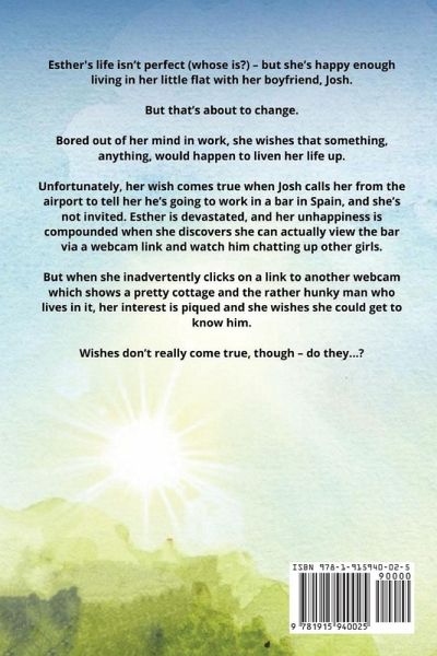 Esther's life isn't perfect (whose is?) - but she's happy enough living in her little flat with her boyfriend, Josh. But that's about to change. Bored out of her mind in work, she wishes that something, anything, would happen to liven her life up. Unfortunately, her wish comes true when Josh calls her from the airport to tell her he's going to work in a bar in Spain, and she's not invited. Esther is devastated, and her unhappiness is compounded when she discovers she can actually view the bar via a webcam link and watch him chatting up other girls. But when she inadvertently clicks on a link to another webcam which shows a pretty cottage and the rather hunky man who lives in it, her interest is piqued and she wishes she could get to know him. Wishes don't really come true, though - do they...?