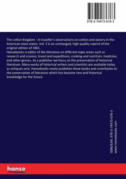 The cotton kingdom - A traveller's observations on cotton and slavery in the American slave states. Vol. 2 is an unchanged, high-quality reprint of the original edition of 1861.