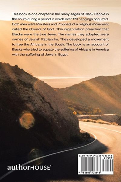 This book is one chapter in the many sagas of Black People in the south during a period in which over 179 hangings occurred. Both men were Ministers and Prophets of a religious movement called the Council of God. This organization preached that Blacks were the true Jews. The names they adopted were names of Jewish Patriarchs. They developed a movement to free the Africans in the South. The book is an account of Blacks who tried to equate the suffering of Africans in America with the suffering of Jews in Egypt.