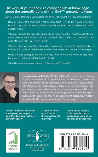 Discover a compendium of knowledge on the counsellor - ENFJ personality type! As you explore this book, you will find the answer to a number of crucial questions: * How do counsellors think and what do they feel? How do they make decisions? How do they solve problems? What makes them anxious? What do they fear? What irritates them? * Which personality types are they happy to encounter on their road through life and which ones do they avoid? What kind of friends, life partners and parents do they make? How do others perceive them? * What are their vocational predispositions? What sort of work environment allows them to function most effectively? Which careers best suit their personality type? * What are their strengths and what do they need to work on? How can they make the most of their potential and avoid pitfalls? * Which famous people correspond to the counsellor's profile? * Which nation displays the most features characteristic of this personality type? This book is part of the ID16 Personality Types series. ID16 is a personality typology which draws on the theory developed by Carl Gustav Jung. Typologies formulated on the basis of Jung's theory are widely used in teaching, training, coaching and human resource management, as well as in career and relationship counselling. They also form a basis for numerous programmes supporting personal development and improving interpersonal relationships. The majority of global businesses employ Jungian personality tests as a standard tool in their recruitment procedures and vocational development processes. Table of Contents Preface ID16 and Jungian Personality Typology The counsellor (ENFJ) * The Personality in a Nutshell * General character traits * Socially * Work and career paths * Potential strengths and weaknesses * Personal development * Well-known figures The ID16 Personality Types in a Nutshell Additional information Recommended publications Bibliography About the Author