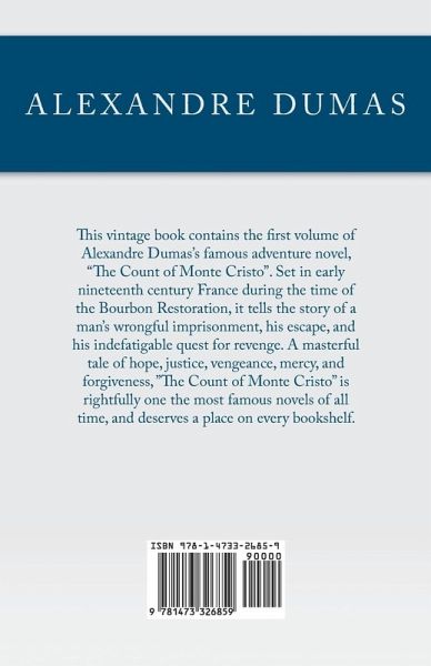 This vintage book contains the first volume of Alexandre Dumas's famous adventure novel, "The Count of Monte Cristo". Set in early nineteenth century France during the time of the Bourbon Restoration, it tells the story of a man's wrongful imprisonment, his escape, and his indefatigable quest for revenge. A masterful tale of hope, justice, vengeance, mercy, and forgiveness, "The Count of Monte Cristo" is rightfully one the most famous novels of all time, and deserves a place on every bookshelf. Alexandre Dumas (1802-1870) was a famous French writer. He is best remembered for his exciting romantic sagas, including "The Three Musketeers" and "Chicot the Jester". Despite making a great deal of money from his writing, Dumas was almost perpetually penniless thanks to his extravagant lifestyle. His novels have been translated into nearly a hundred different languages, and have inspired over 200 motion pictures. Many of the earliest books, particularly those dating back to the 1900s and before, are now extremely scarce and increasingly expensive. We are republishing this antiquarian book now in an affordable, modern, high-quality edition complete with a specially commissioned new biography of the author.