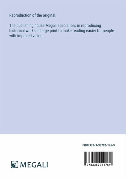 Reproduction of the original. The publishing house Megali specialises in reproducing historical works in large print to make reading easier for people with impaired vision.
