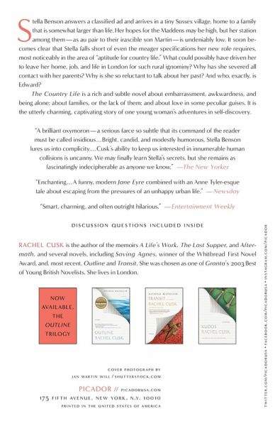 A New York Times Notable Book of the Year Winner of the Somerset Maugham Award The Country Life, Rachel Cusk's third novel, is a rich and subtle story about embarrassment, awkwardness, and being alone; about families, or the lack of them; and about love in some peculiar guises. "A brilliant oxymoron-a serious farce . . . Cusk's ability to keep us interested in innumerable human collisions is uncanny." -The New Yorker Stella Benson sets off for Hilltop, a tiny Sussex village housing a family that is somewhat larger-than-life. Her hopes for the Maddens may be high, but her station among them-as au pair to their irascible son, Martin-is undeniably low. What could possibly have driven her to leave her home, job, and life in London for such rural ignominy? Why has she severed all contact with her parents? And why is she so reluctant to talk about her past?