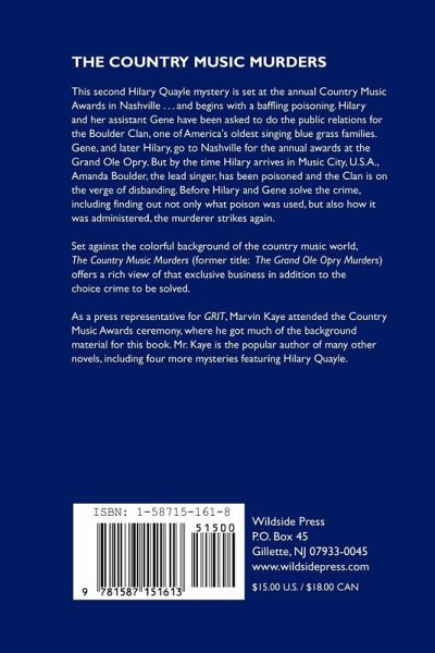 This second Hilary Quayle mystery finds her backstage at Nashville's Grand Ole Opry when musicians are being bumped off one by one. Author Kaye draws on his experience as an entertainment reporter for this country music mystery.