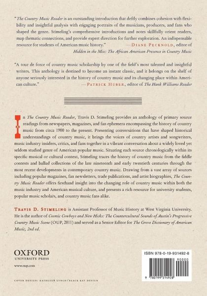 In The Country Music Reader Travis D. Stimeling provides an anthology of primary source readings from newspapers, magazines, and fan ephemera encompassing the history of country music from circa 1900 to the present. Presenting conversations that have shaped historical understandings of country music, it brings the voices of country artists and songwriters, music industry insiders, critics, and fans together in a vibrant conversation about a widely loved yet seldom studied genre of American popular music. Situating each source chronologically within its specific musical or cultural context, Stimeling traces the history of country music from the fiddle contests and ballad collections of the late nineteenth and early twentieth centuries through the most recent developments in contemporary country music. Drawing from a vast array of sources including popular magazines, fan newsletters, trade publications, and artist biographies, The Country Music Reader offers firsthand insight into the changing role of country music within both the music industry and American musical culture, and presents a rich resource for university students, popular music scholars, and country music fans alike.