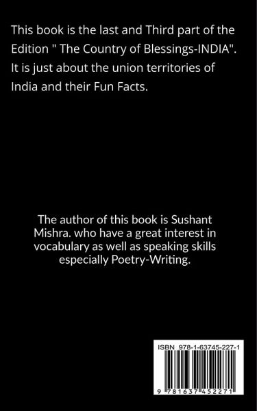 This book is the Last and the Third part of the Edition " The Country of Blessings:INDIA". It is based on India's Union Territories and their Fun Facts.