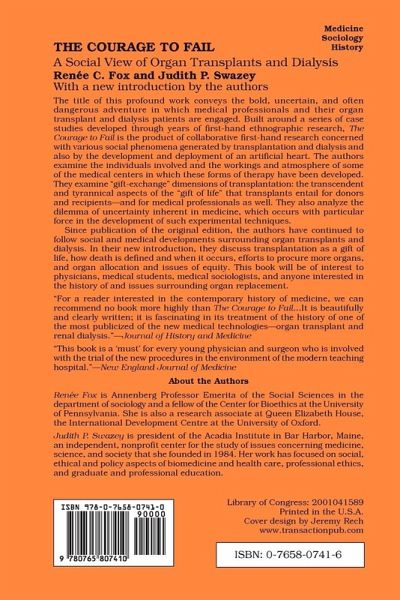 The title of this profound work conveys the bold, uncertain, and often dangerous adventure in which medical professionals and their organ transplant and dialysis patients are engaged. Built around a series of case studies, The Courage to Fail is the product of collaborative first-hand research concerned with various social phenomena generated by transplantation and dialysis. The authors examine the individuals involved and the workings and atmosphere of some of the medical centers in which these forms of therapy have been developed. They examine "gift-exchange" dimensions of transplantation: the transcendent and tyrannical aspects of the "gift of life" that transplants entail for donors and recipients-and for medical professionals as well. They also analyze the dilemma of uncertainty inherent in medicine, which occurs with particular force in the development of such experimental techniques.Since publication of the original edition, the authors have continued to follow social and medical developments surrounding organ transplants and dialysis. In their new introduction, they discuss transplantation as a gift of life, how and when death occurs, efforts to procure more organs, and organ replacement and issues of equity. This book will be of interest to physicians, medical students, medical sociologists, and anyone interested in the history of and issues surrounding organ transplantation and dialysis.
