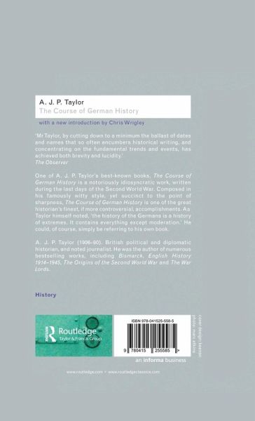One of A.J.P. Taylor's best-known books, The Course of German History is a notoriously idiosyncratic work. Composed in his famously witty style, yet succinct to the point of sharpness, this is one of the great historian's finest, if more controversial, accomplishments. As Taylor himself noted, 'the history of the Germans is a history of extremes. It contains everything except moderation.' He could, of course, simply be referring to his own book.