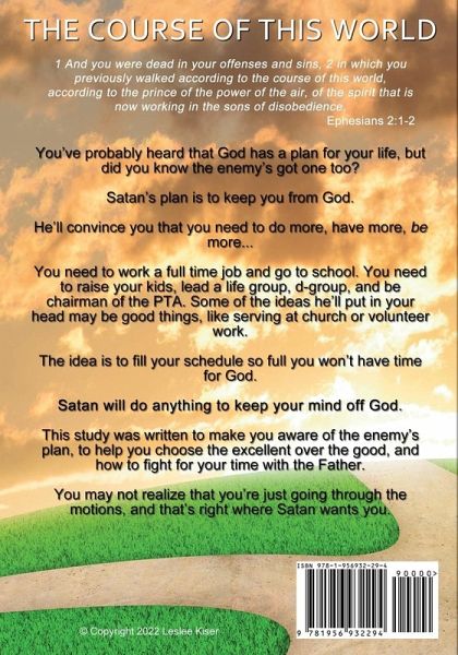 You've probably heard that God has a plan for your life, but did you know the enemy's got one too? Satan's plan is to keep you from God. He'll convince you that you need to do more, have more, be more. You need to work a full time job and go to school. You need to raise your kids, lead a life group, d-group, and be chairman of the PTA. Some of the ideas he'll put in your head may be good things, like serving at church or volunteer work. The idea is to fill your schedule so full you won't have time for God. Satan will do anything to keep your mind off God. This study was written to make you aware of the enemy's plan, to help you choose the excellent over the good, and how to fight for your time with the Father.Y ou may not realize that you're just going through the motions, and that's right where Satan wants you.